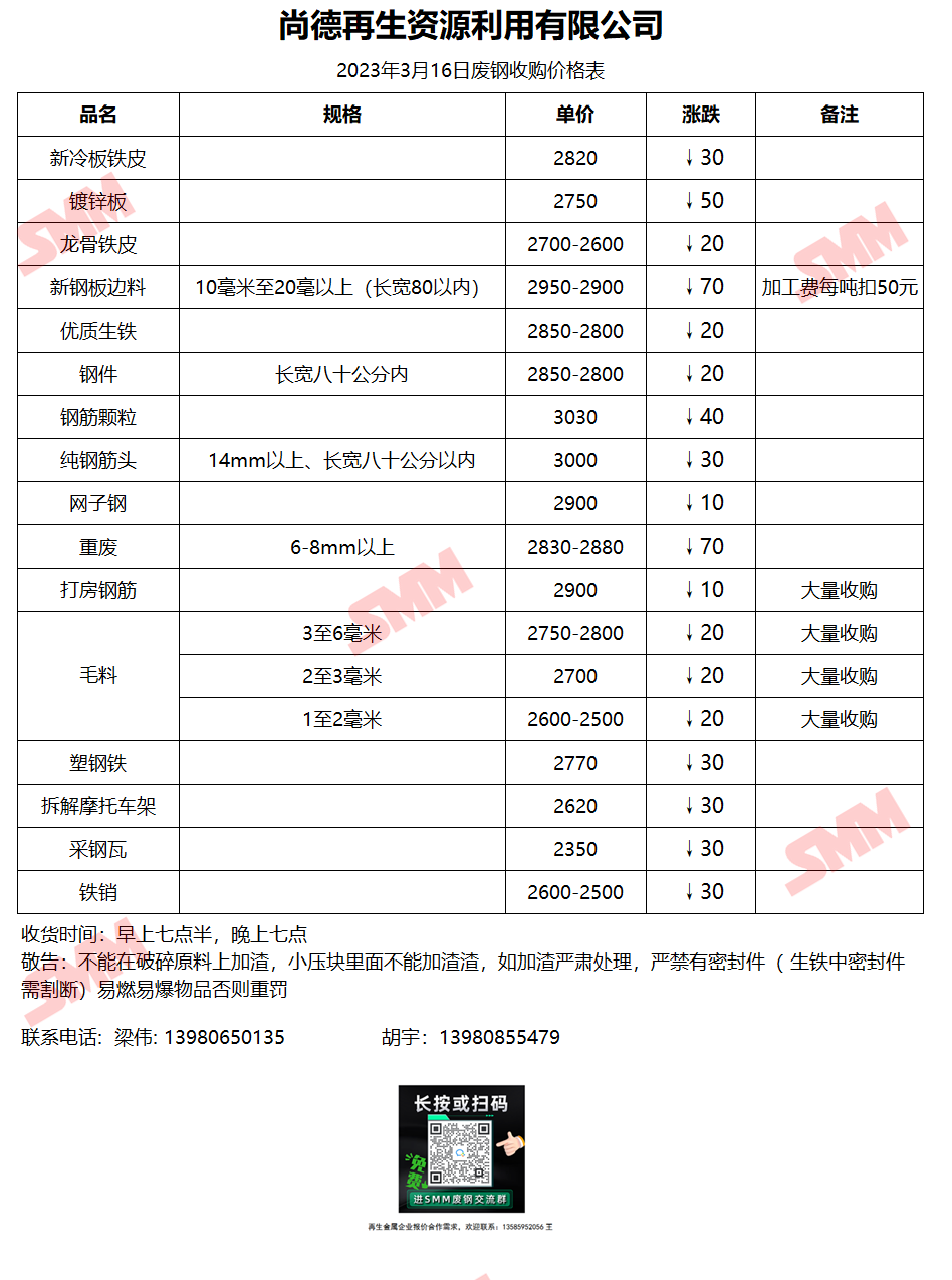3月16日 尚德再生资源 废钢收购报价