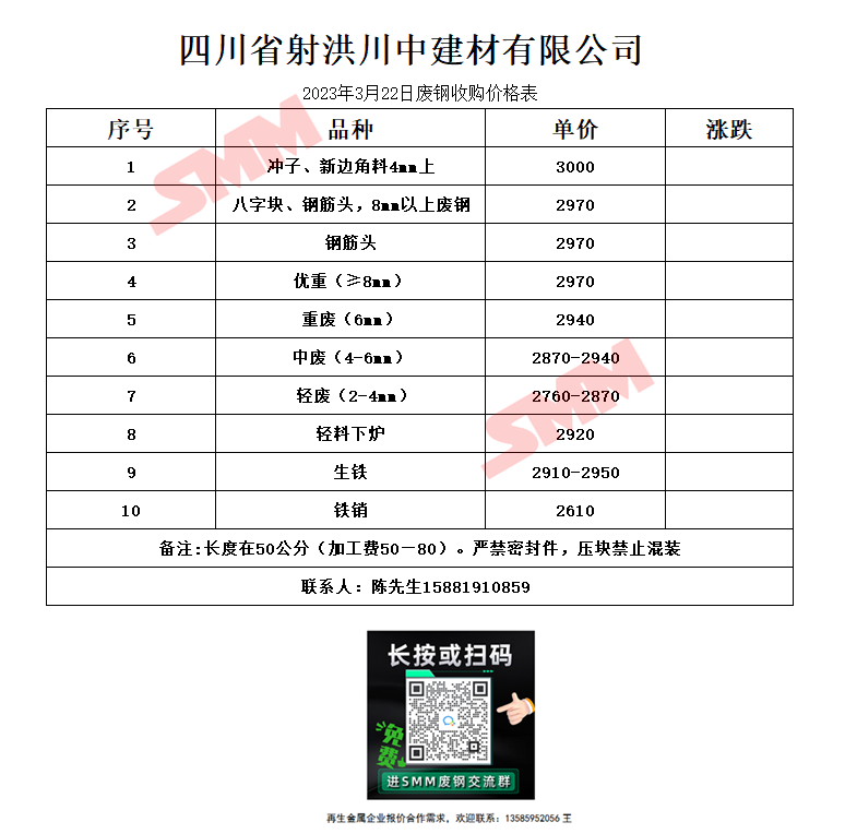 4月7日鑫泉钢铁(原绵竹金泉钢铁) 废钢采购报价