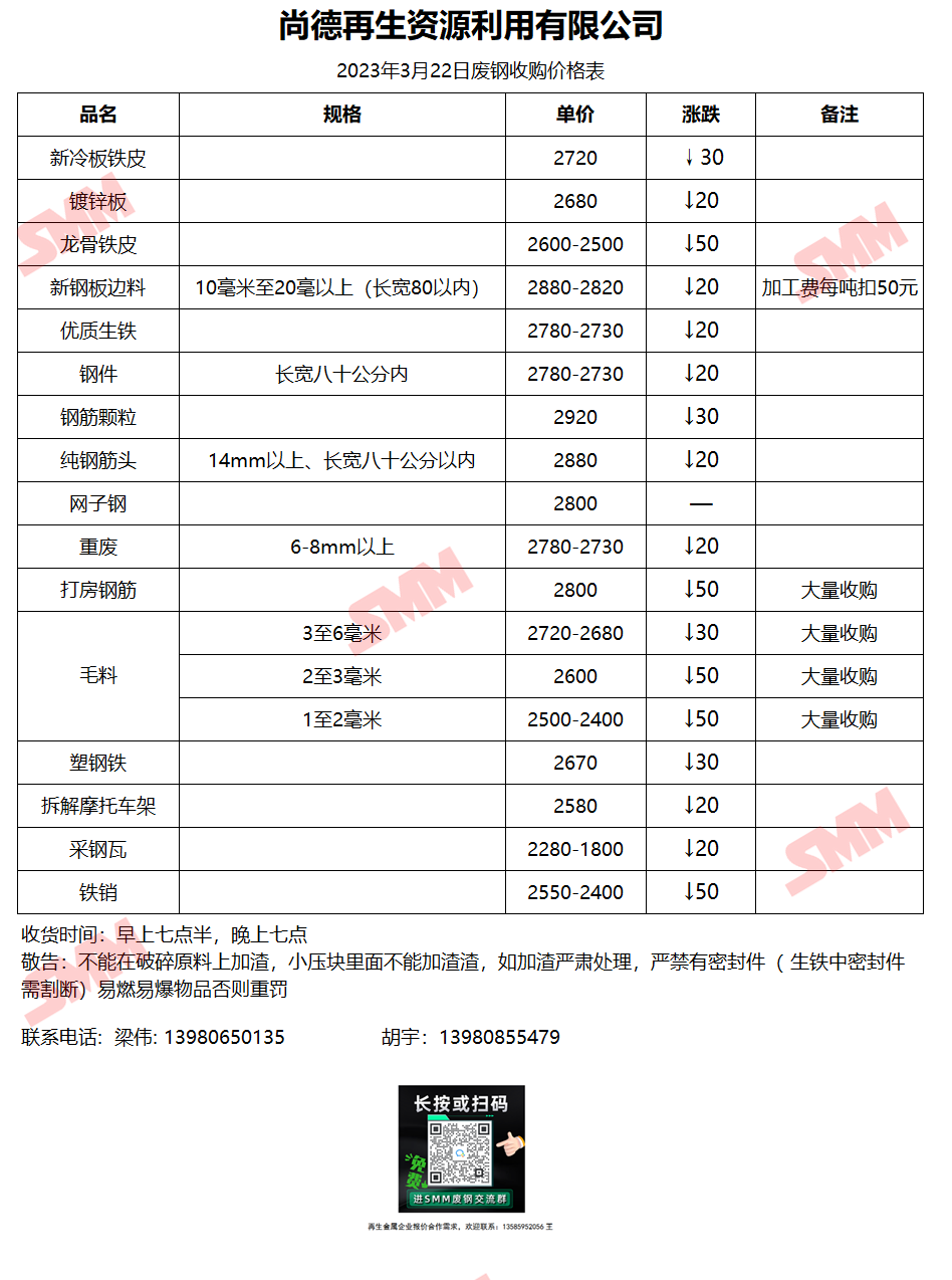 今日 尚德再生资源 废钢收购报价已更新,有货的朋友欢迎联系我们!