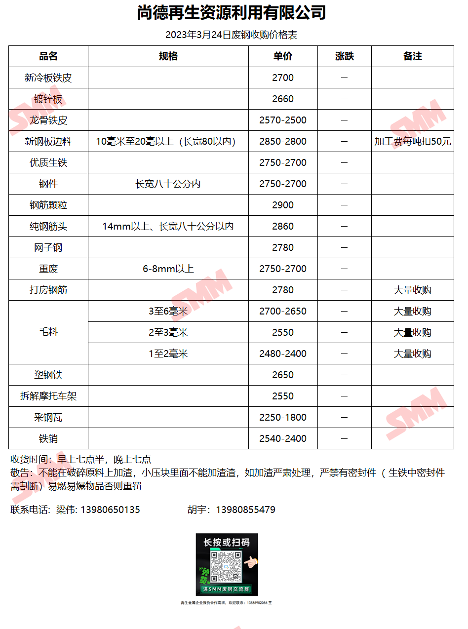 3月24日尚德再生资源 废钢收购报价