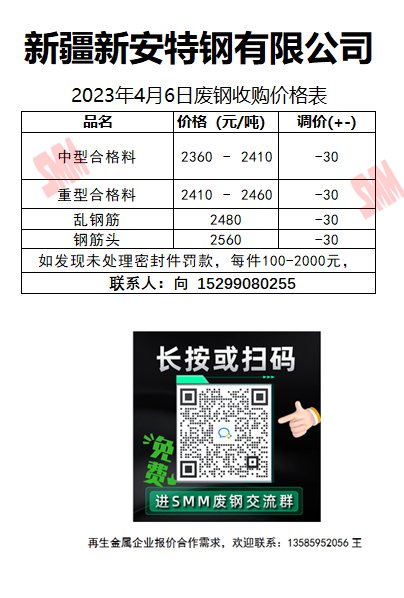 4月6日新安特钢 废钢收购报价