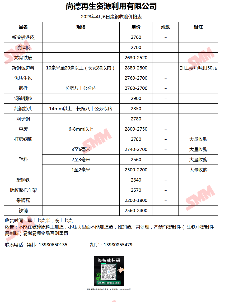 4月6日尚德再生资源 废钢收购报价