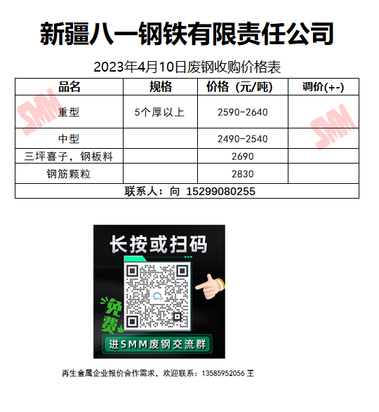 4月10日新疆八一钢铁 废钢收购报价