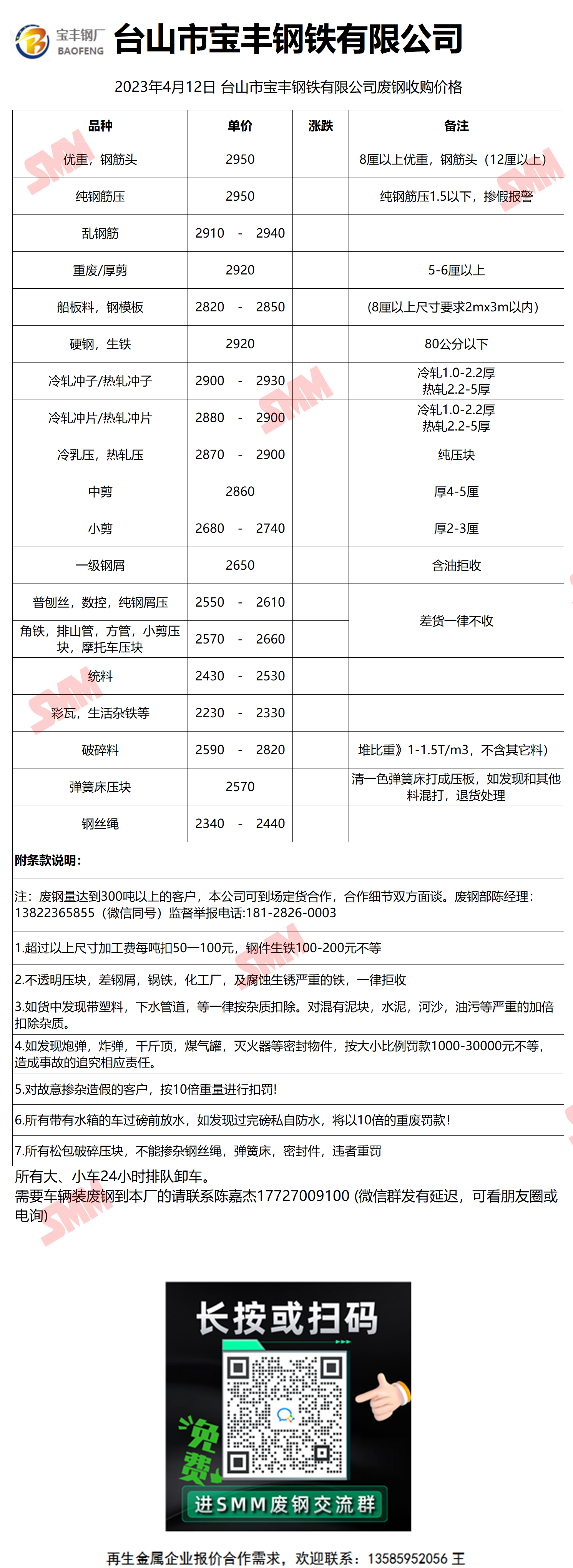 4月3日宝丰钢铁 废钢销售报价