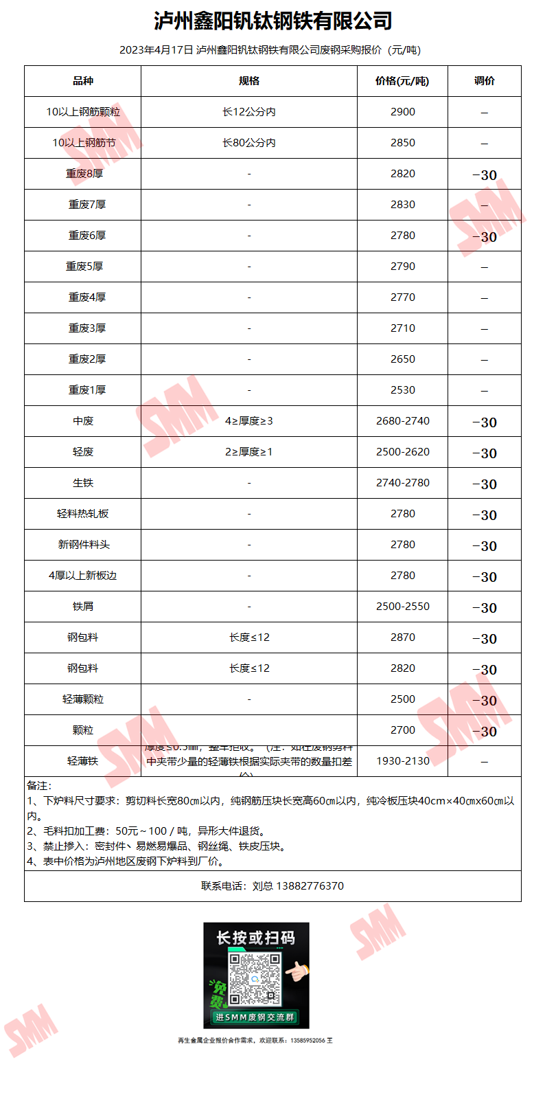 4月17日泸州鑫阳钒钛 废钢采购报价