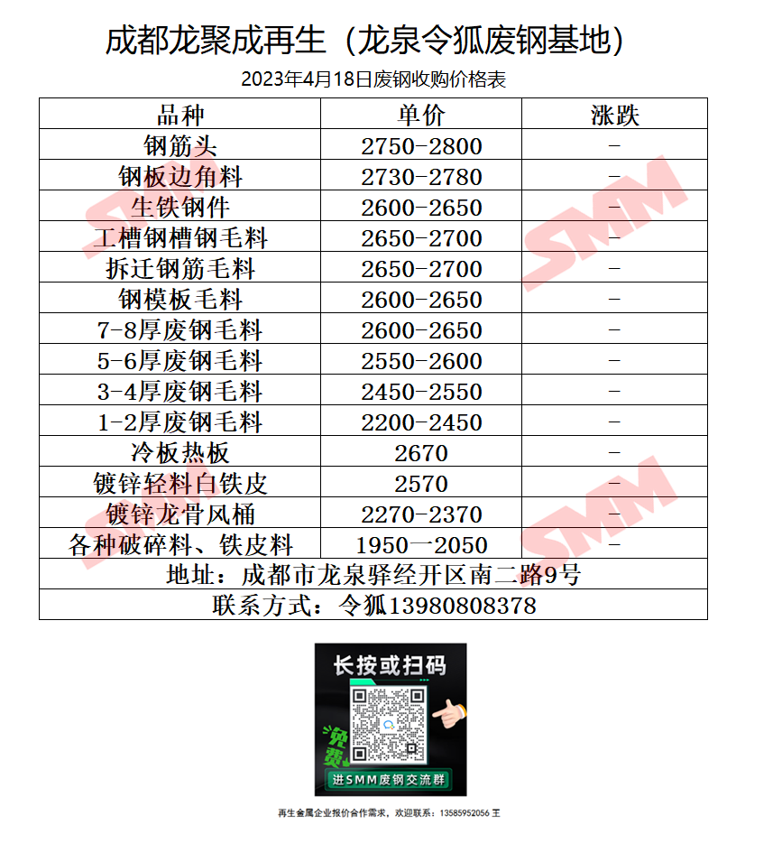 4月18日龙聚成 废钢收购报价