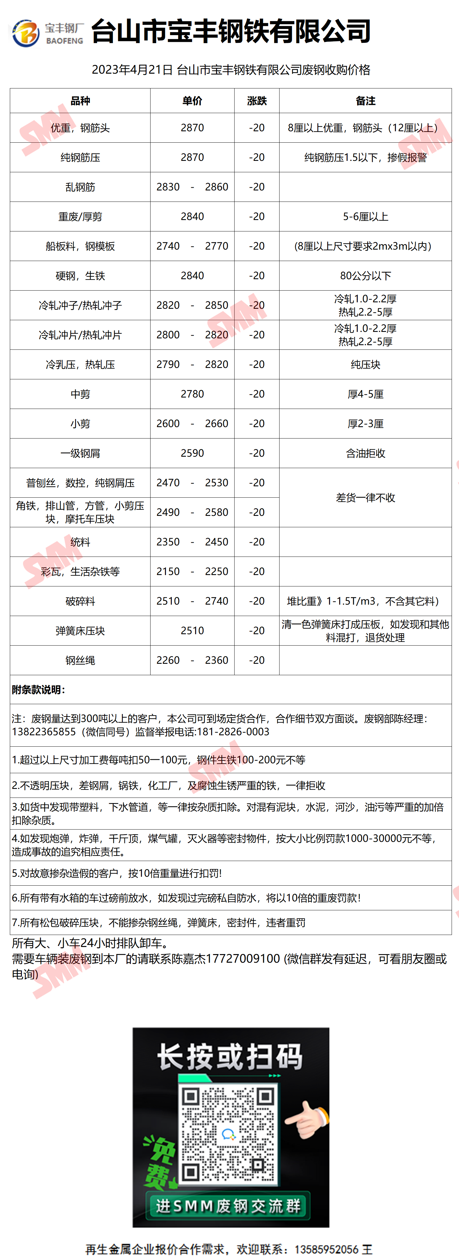4月21日宝丰钢铁 废钢收购报价
