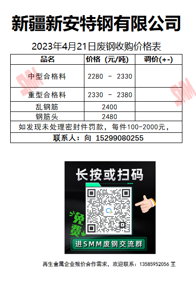 4月21日新安特钢 废钢收购报价
