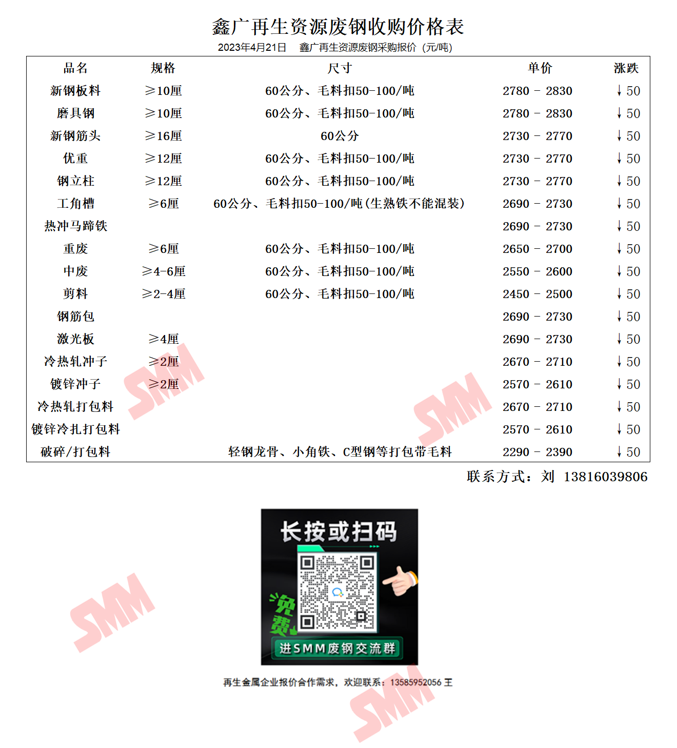 4月21日鑫广再生资源 废钢采购报价