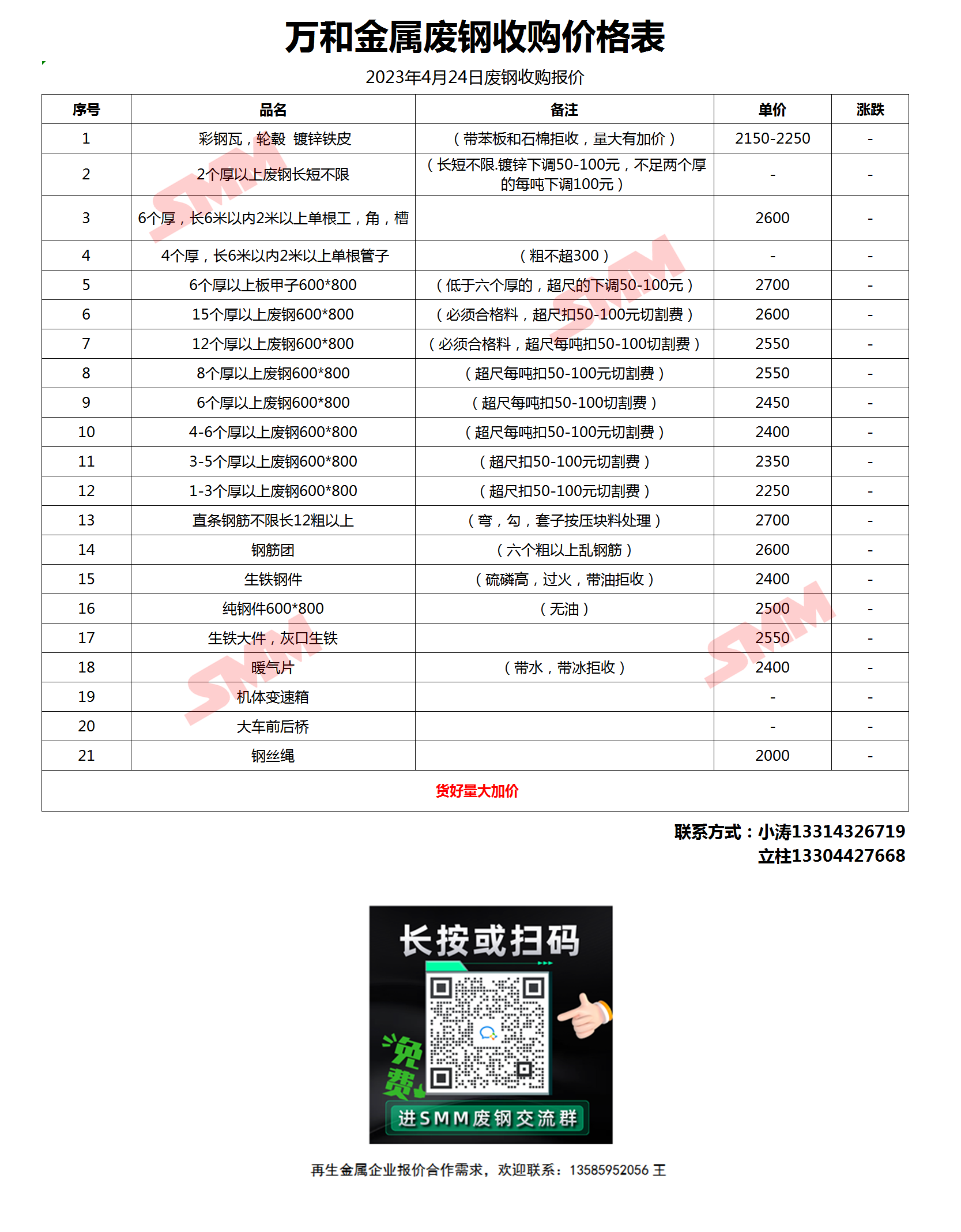 4月24日万和金属 废钢收购报价