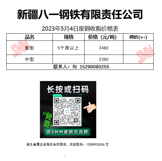 今日新疆八一钢铁 废钢收购报价已更新,有货的朋友欢迎联系我们!