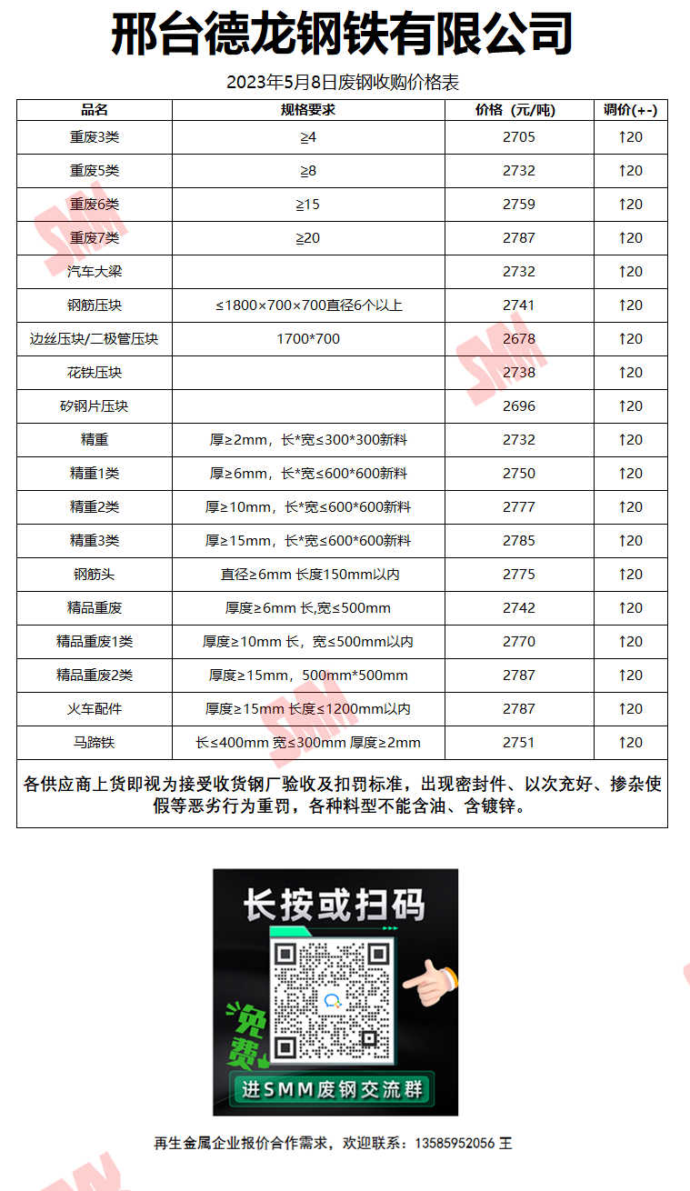 5月8日邢台德龙钢铁 废钢收购报价