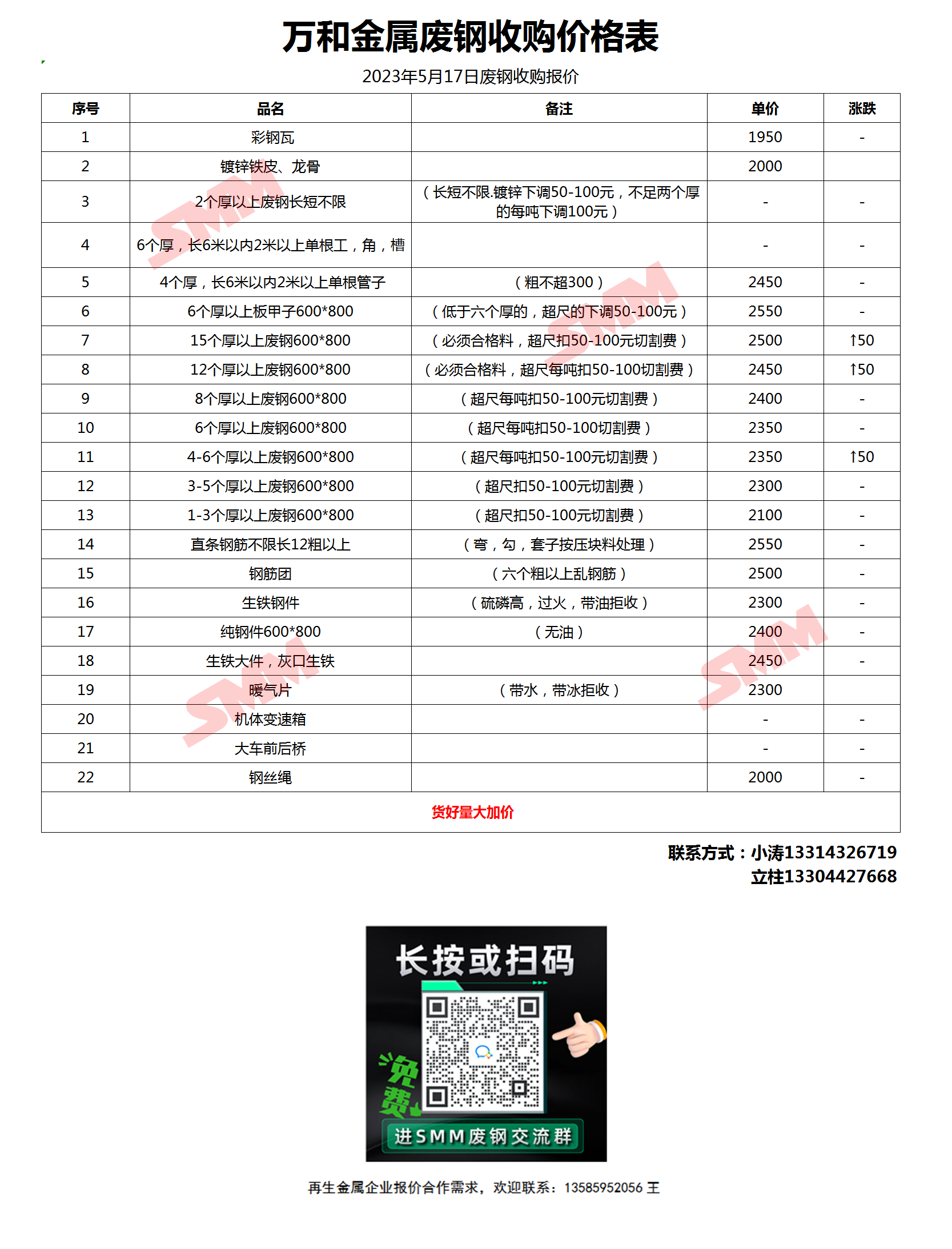 今日 万和金属 废钢收购报价已更新,有货的朋友欢迎联系我们!
