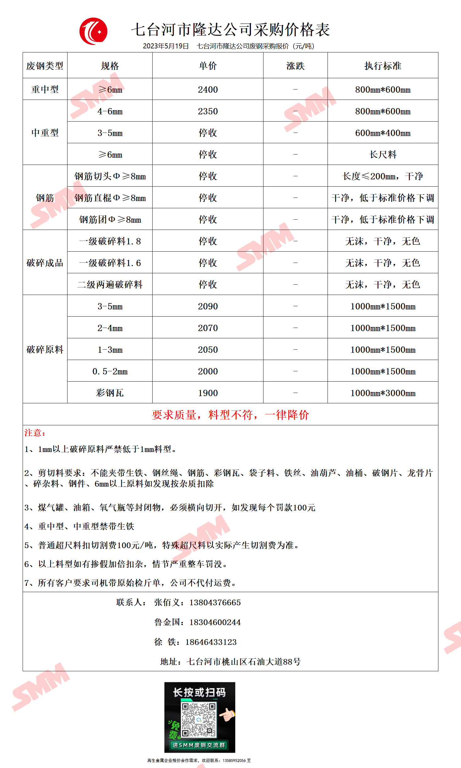 5月19日七台河市隆达 废钢采购报价