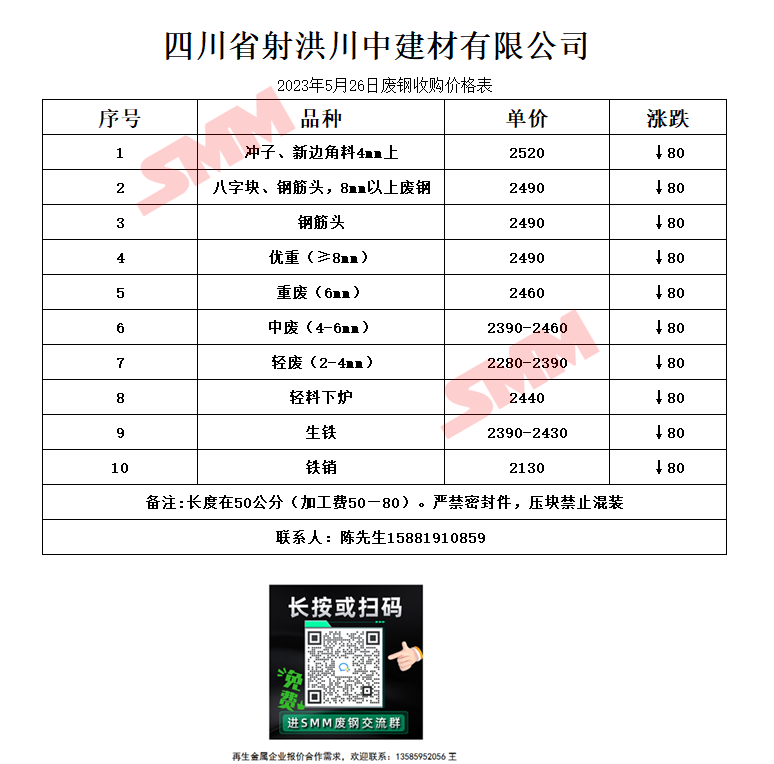 5月26日四川射洪川中 废钢收购报价