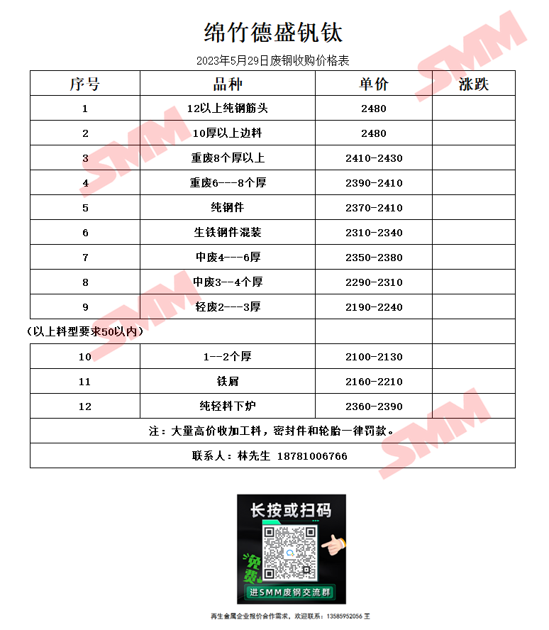 今日绵竹德盛钒钛 废钢收购报价已更新,有货的朋友欢迎联系我们!