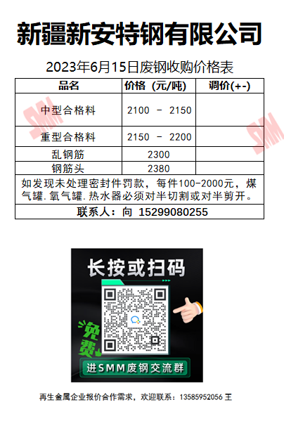 6月15日新安特钢 废钢收购报价