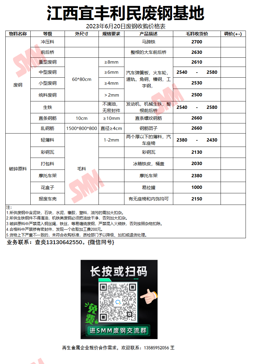 6月20日宜丰利民钢铁 废钢收购报价