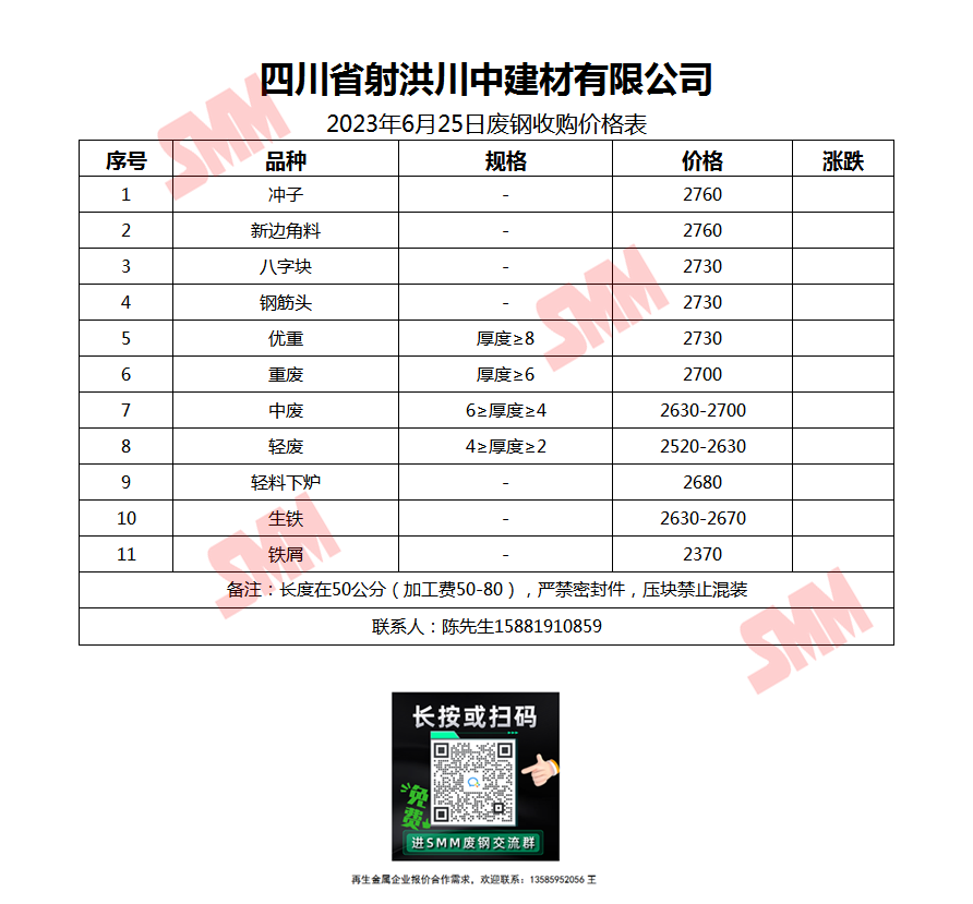 6月25日四川射洪川中 废钢收购报价