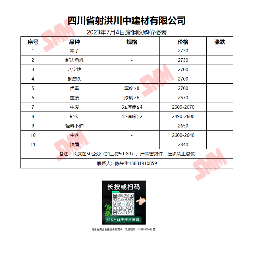 7月4日四川射洪川中 废钢收购报价