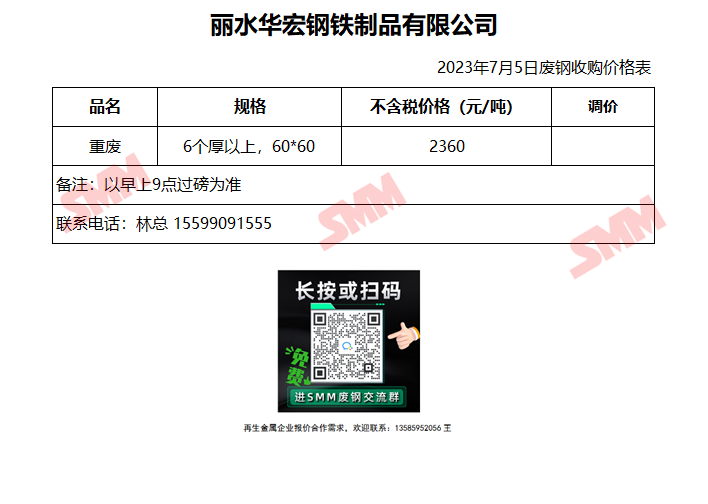 今日丽水华宏 废钢收购报价已更新,有货的朋友欢迎联系我们!