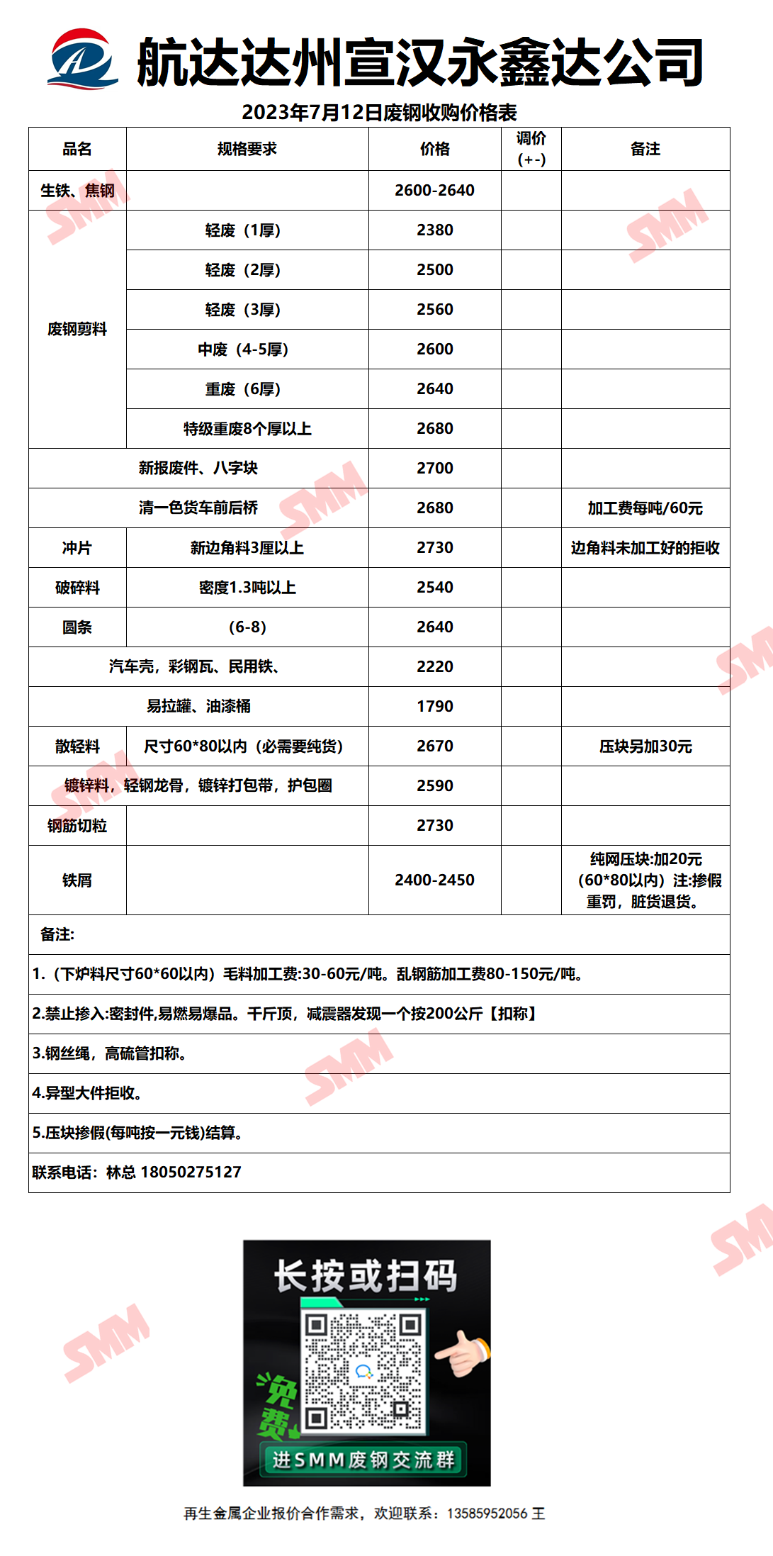 今日达州宣汉永鑫达 废钢收购报价已更新,有货的朋友欢迎联系我们!