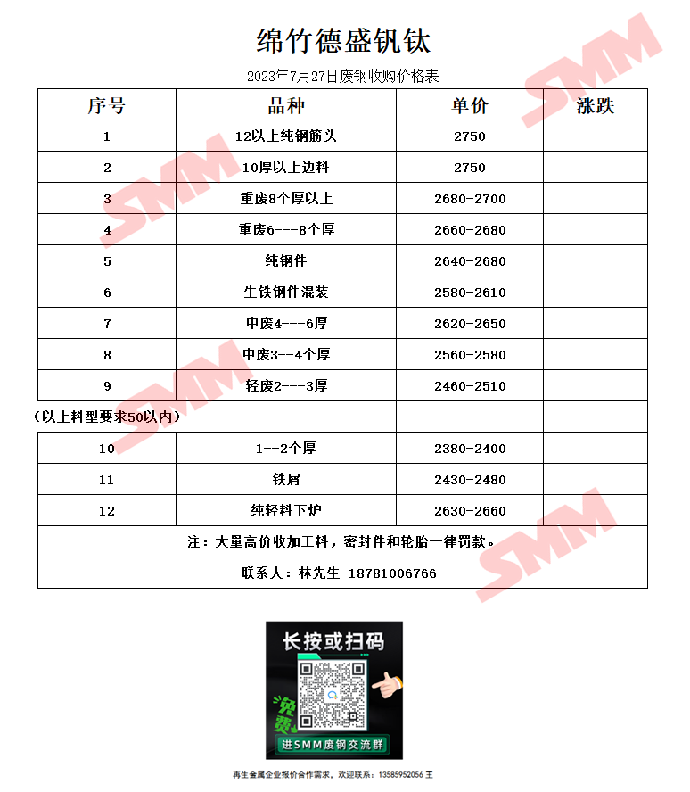 7月27日绵竹德盛钒钛 废钢收购报价
