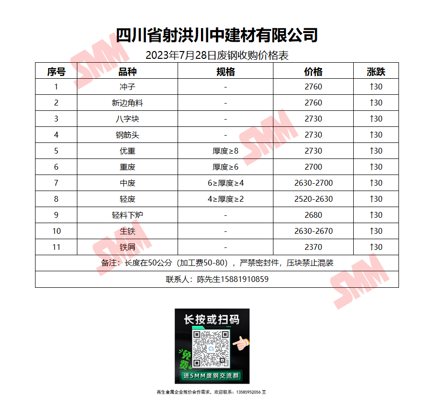 7月28日四川射洪川中 废钢收购报价