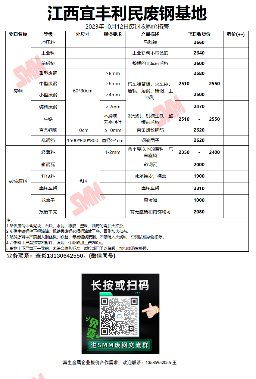 今日宜丰利民 废钢收购报价已更新,有货的朋友欢迎联系我们!