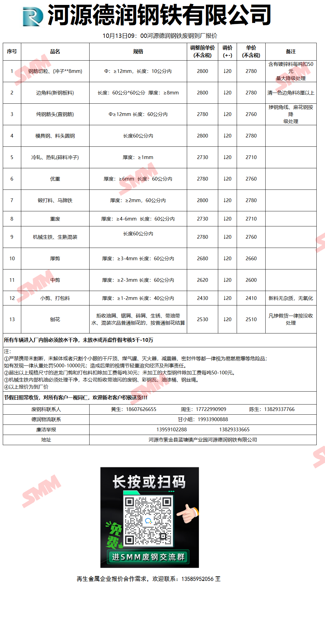 10月13日(10时30分)河源德润 废钢收购报价