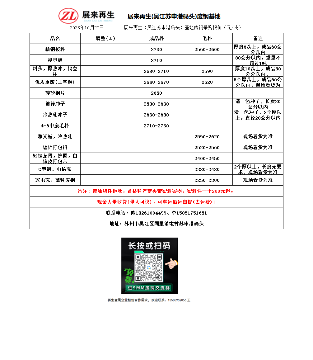 今日展来再生基地 废钢采购报价已更新,有货的朋友欢迎联系我们!