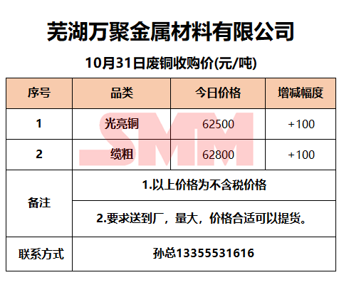今日芜湖万聚金属,废铜收购报价已更新,有货的朋友欢迎联系我们!