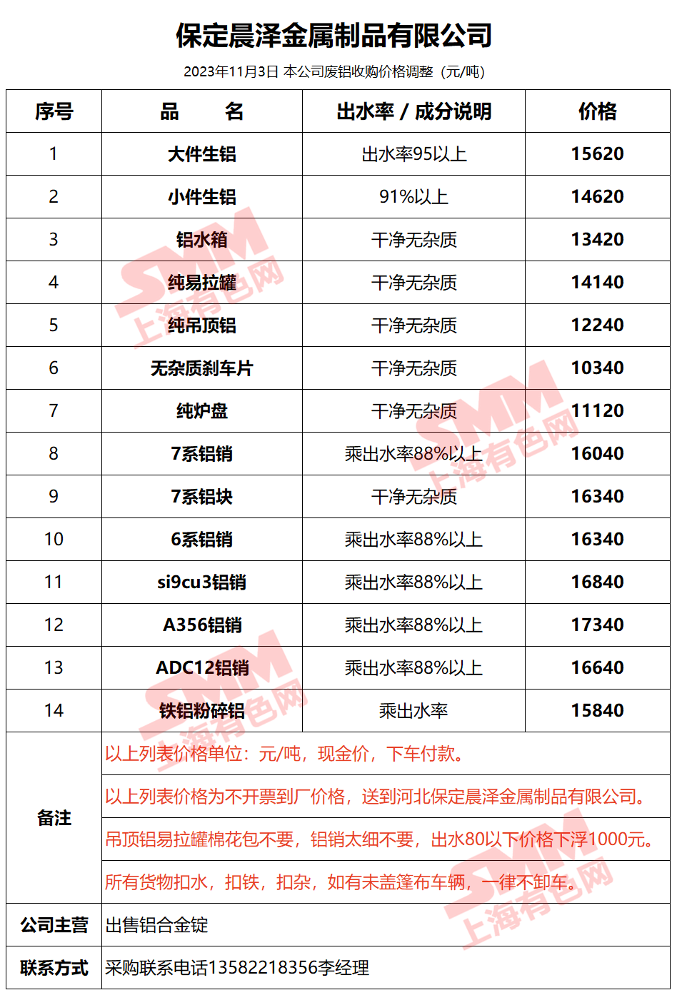 今日保定晨泽金属制品有限公司 废铝采购报价已更新,有货的朋友欢迎联系我们!