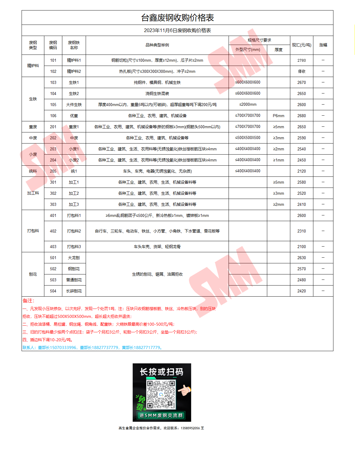 今日台鑫 废钢收购报价已更新,有货的朋友欢迎联系我们!