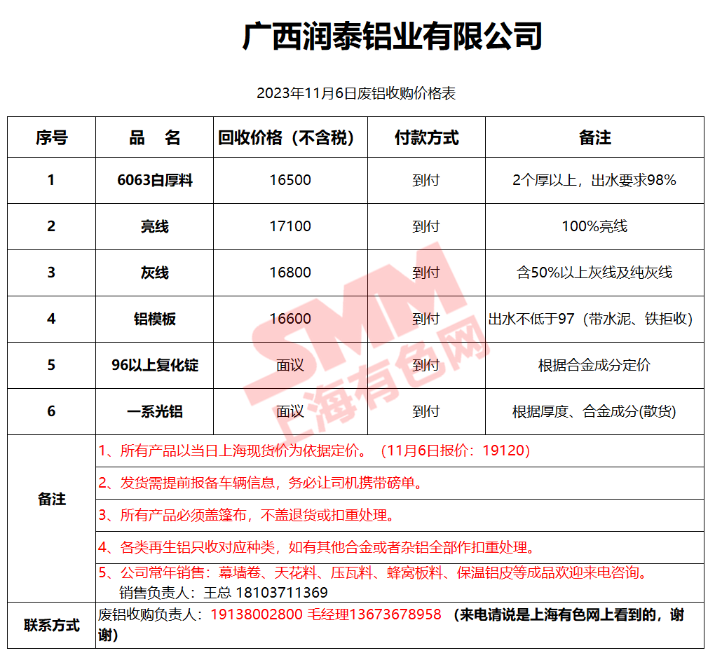 今日广西润泰铝业 废铝采购报价已更新,有货的朋友欢迎联系我们!