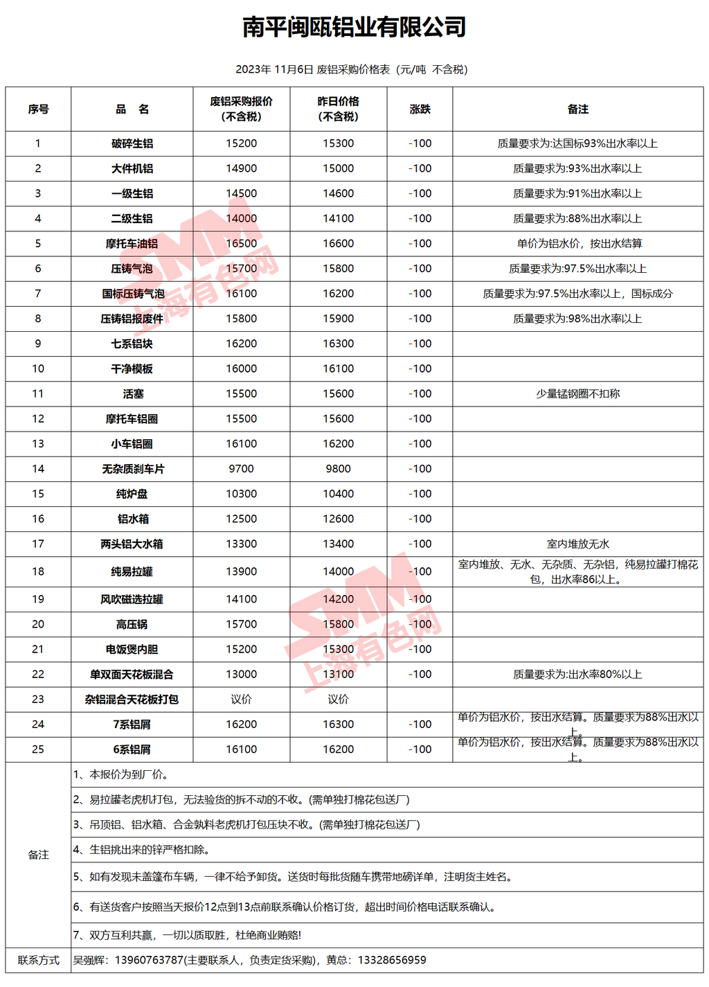今日南平闽瓯 废铝采购报价已更新,有货的朋友欢迎联系我们!