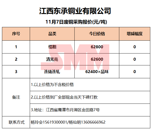 11月7日江西东承 废铜采购报价