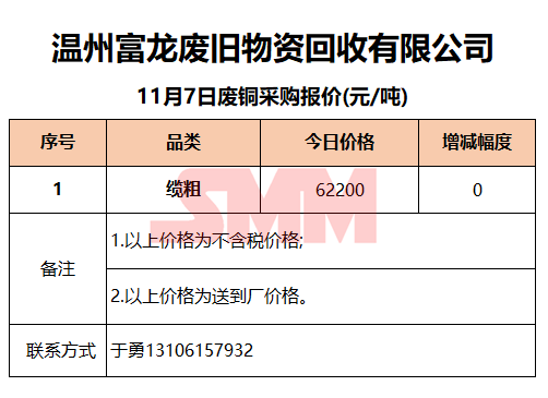 今日温州富龙废旧,废铜采购报价已更新,有货的朋友欢迎联系我们!
