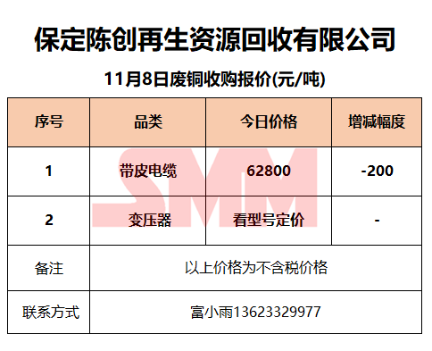 今日保定陈创再生资源,废金属收购报价已更新,有货的朋友欢迎联系我们!