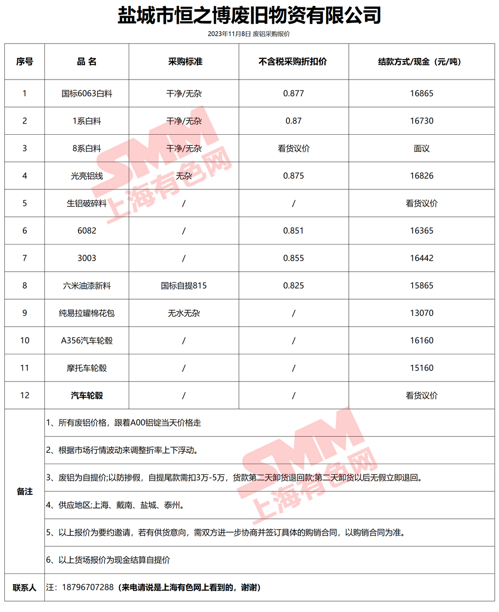11月8日盐城市恒之博 废铝采购报价