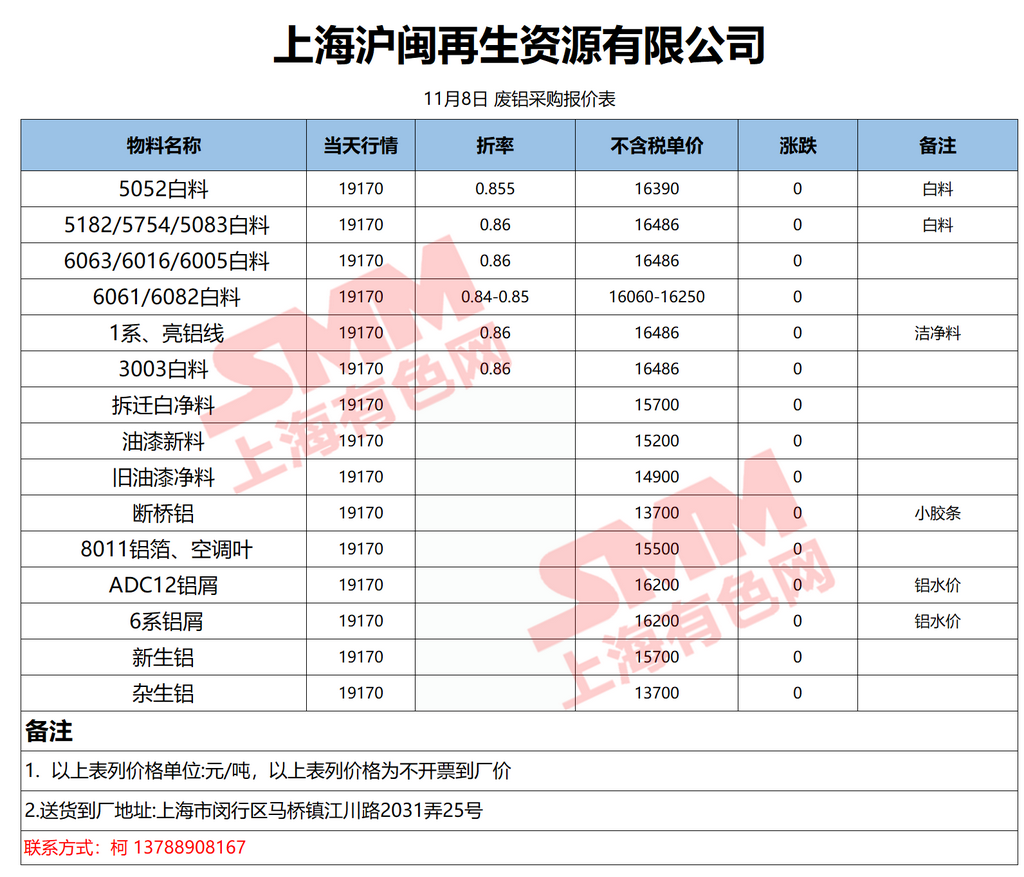 今日上海沪闽再生资源有限公司 废铝采购报价已更新,有货的朋友欢迎联系我们!