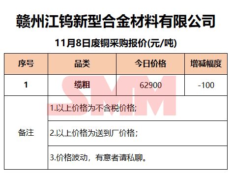 11月8日赣州江钨 废铜采购报价