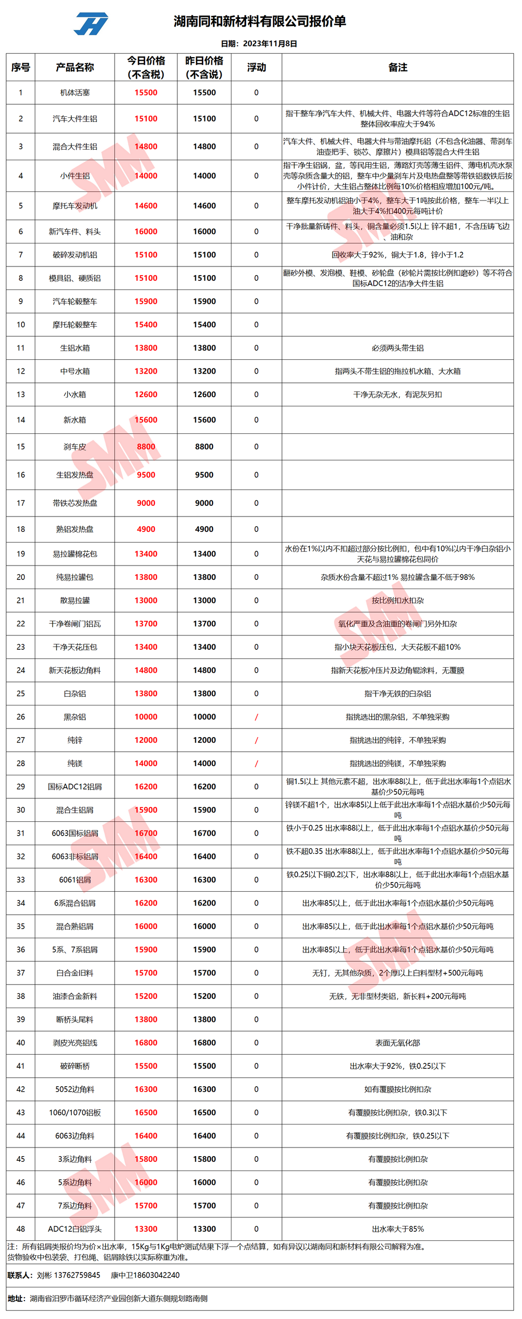 今日湖南同和 废铝采购报价已更新,有货的朋友欢迎联系我们!