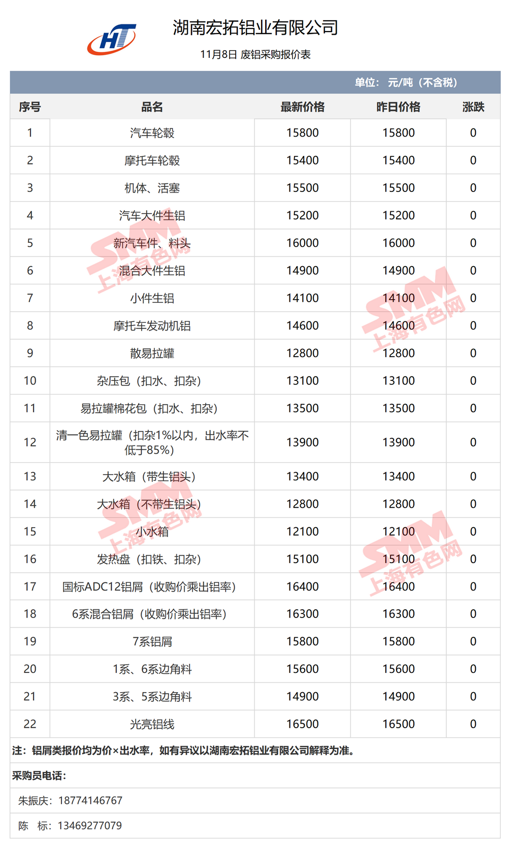 今日湖南宏拓铝业 废铝采购报价已更新,有货的朋友欢迎联系我们!