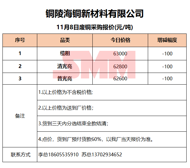 今日铜陵海铜,废铜采购报价已更新,有货的朋友欢迎联系我们!