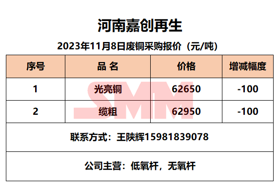 今日河南嘉创再生,废铜采购报价已更新,有货的朋友欢迎联系我们!