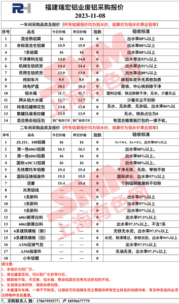 11月8日福建瑞宏 废铝采购报价