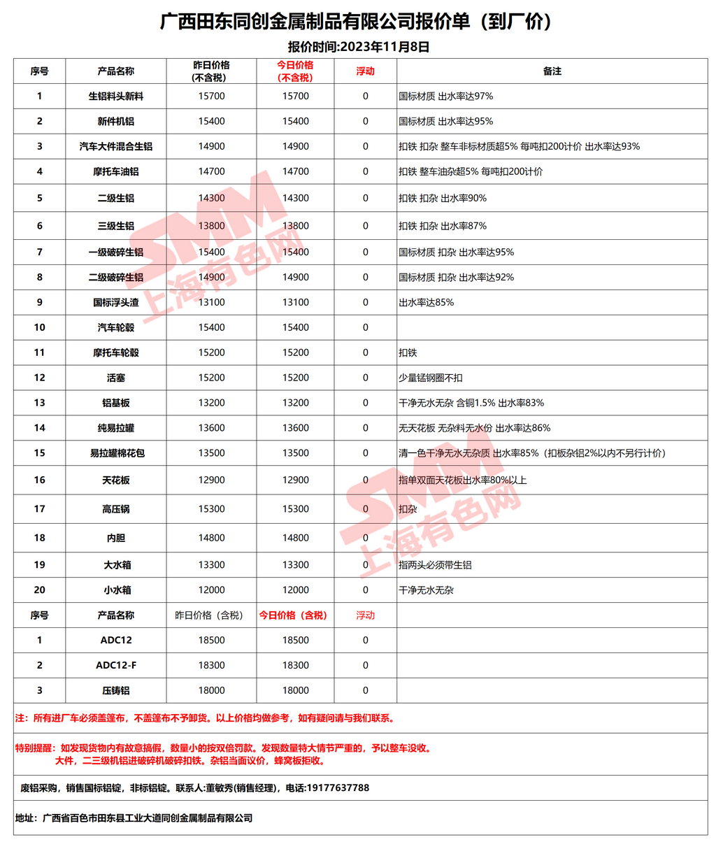 11月8日广西同创 废铝采购报价