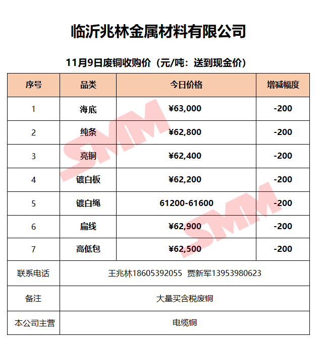 今日临沂兆林金属 ,废铜收购报价已更新,有货的朋友欢迎联系我们!