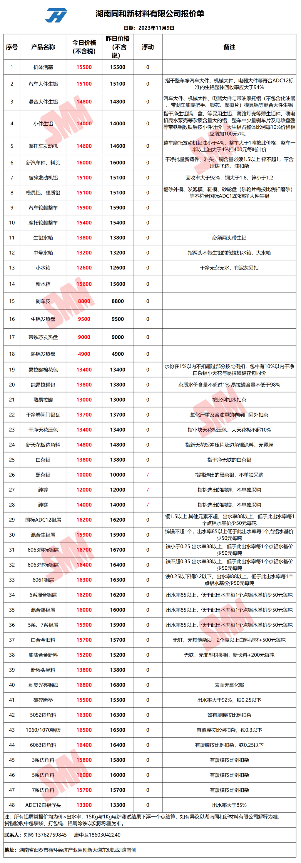 今日湖南同和 废铝采购报价已更新,有货的朋友欢迎联系我们!